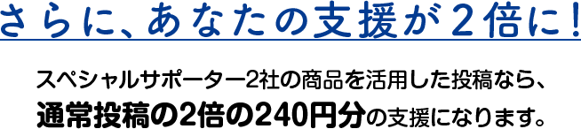 スペシャルサポーター2社の商品を活用した投稿なら、通常投稿の2倍の240円分の支援になります。