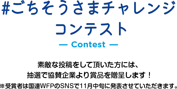 素敵な投稿をして頂いた方には、抽選で協賛企業より賞品を贈呈します! ※受賞者は国連WFPのSNSで11月中旬に発表させていただきます。