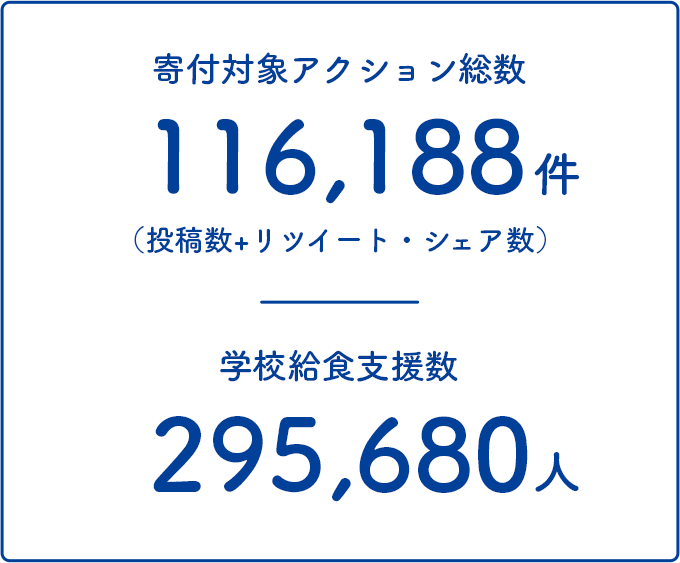 寄付対象アクション総数 116,188件 (投稿数+リツイート・シェア数)