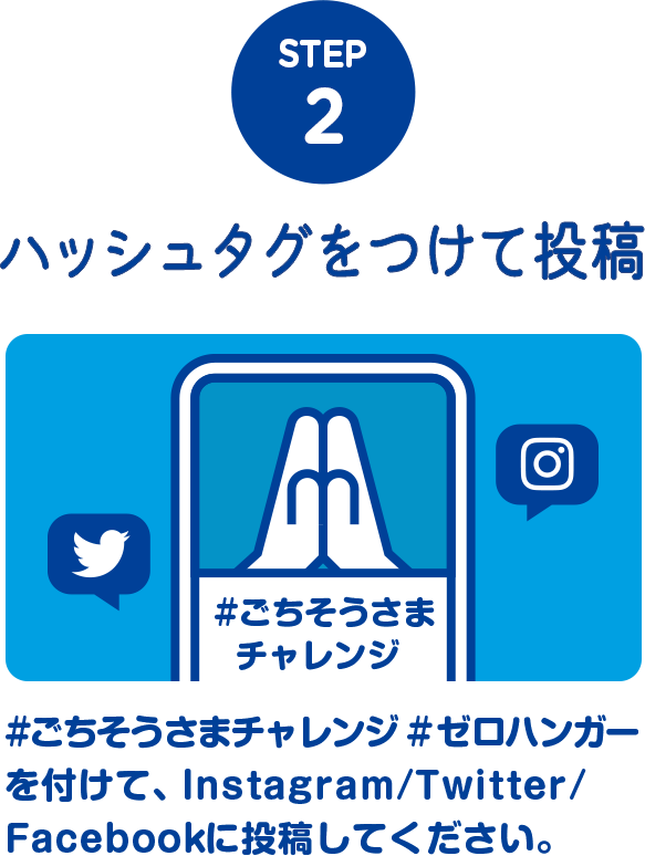 #ごちそうさまチャレンジ #ゼロハンガー を付けて、Instagram/Twitter/Facebookに投稿してください。