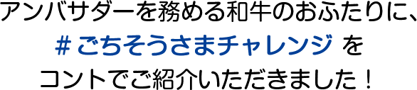 アンバサダーを務める和牛のおふたりに、#ごちそうさまチャレンジ をコントでご紹介いただきました!